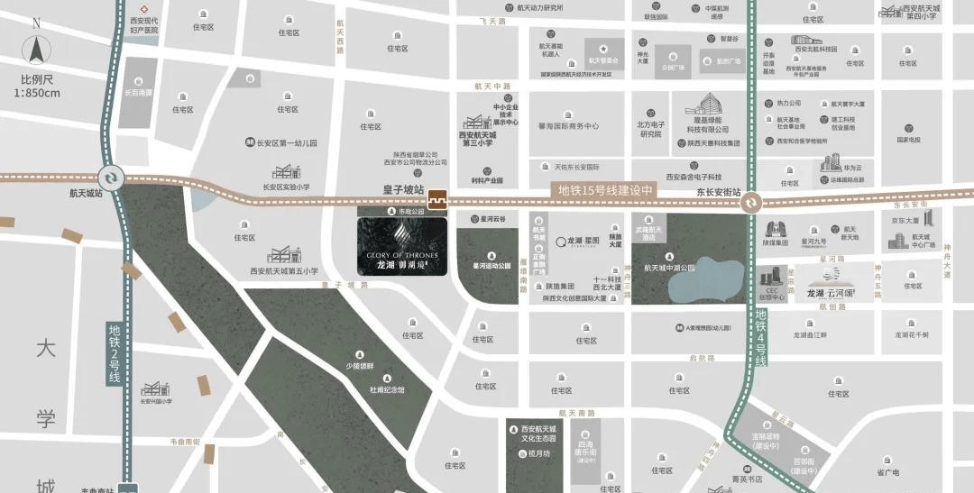 生态核心:项目北侧为口袋公园、一之隔星河活动公园、1KM内航天城中湖公园,传承了古城西安的盛唐文化,